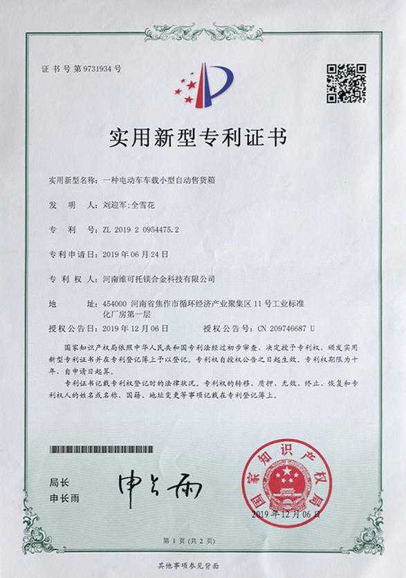 實用新型專利證書